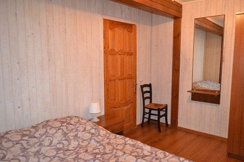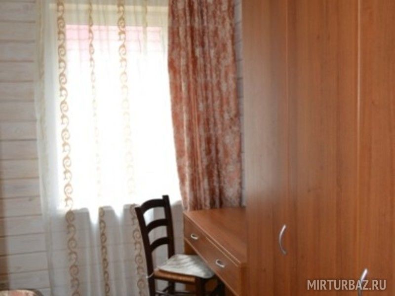 Первый этаж. Гостевая совмещена с кухней на кухне имеется микроволновка, встроенная плита, электрический чайник и холодильник. Спальня: две кровати, гардероб, трильяж, санузел, душевая кабина, умывальник.