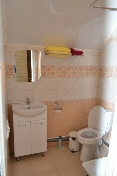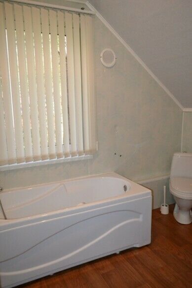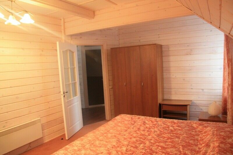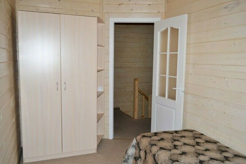 Второй этаж. Большая спальня с двухспальной кроватью, гардеробом и трельяжем. И еще одна спальня, две односпальные кровати и гардероб. Санузел, ванна, умывальник.