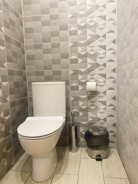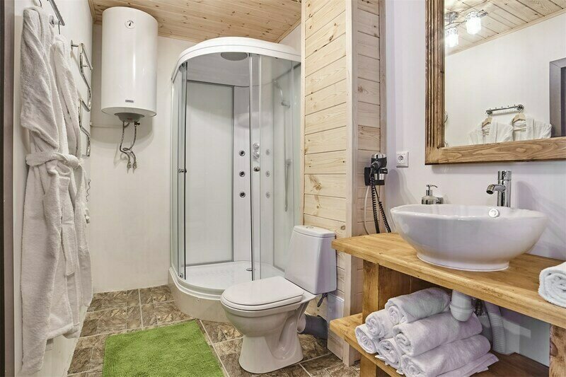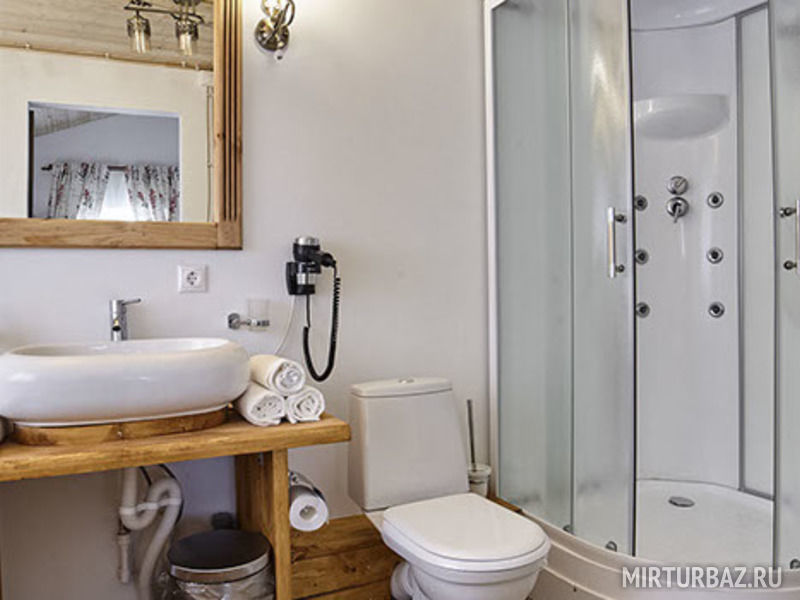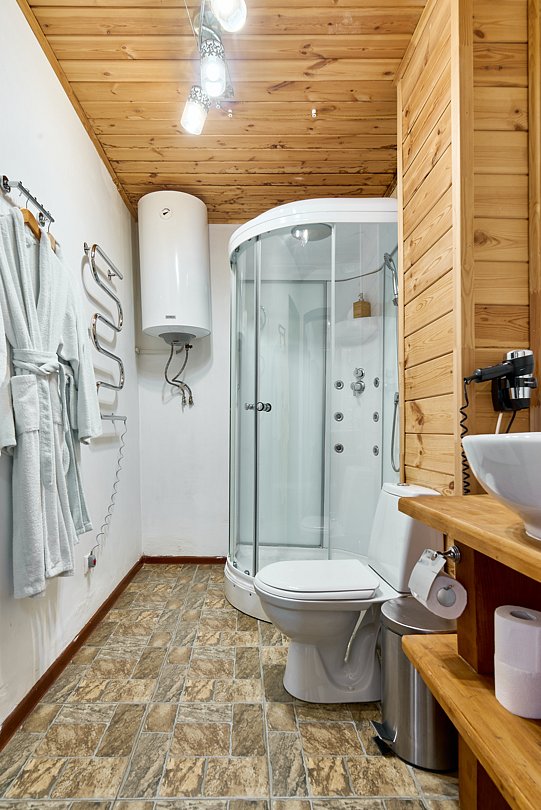 - Увеличенный санузел с окном оборудован большой душевой и ванной
