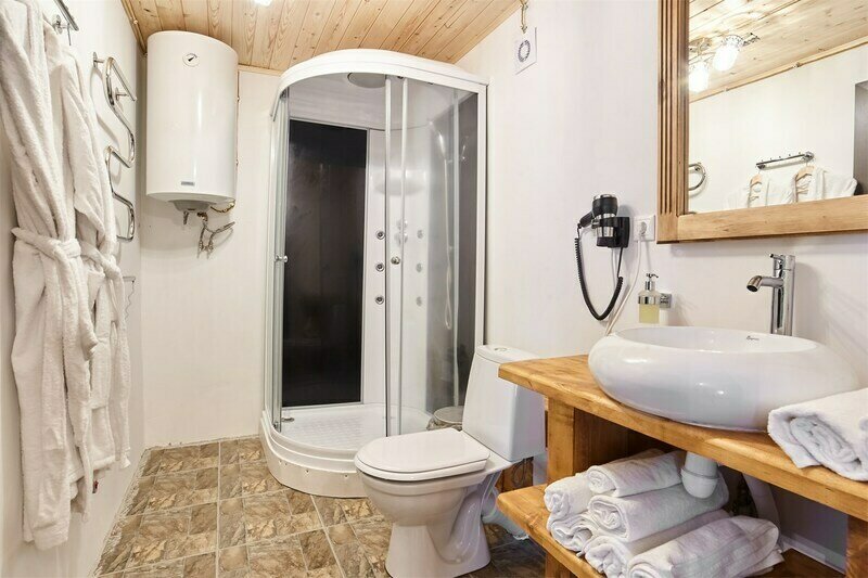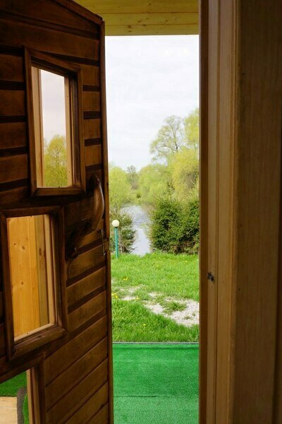 - попариться в бане с дровяной печкой, березовыми вениками и удобным выходом к реке;