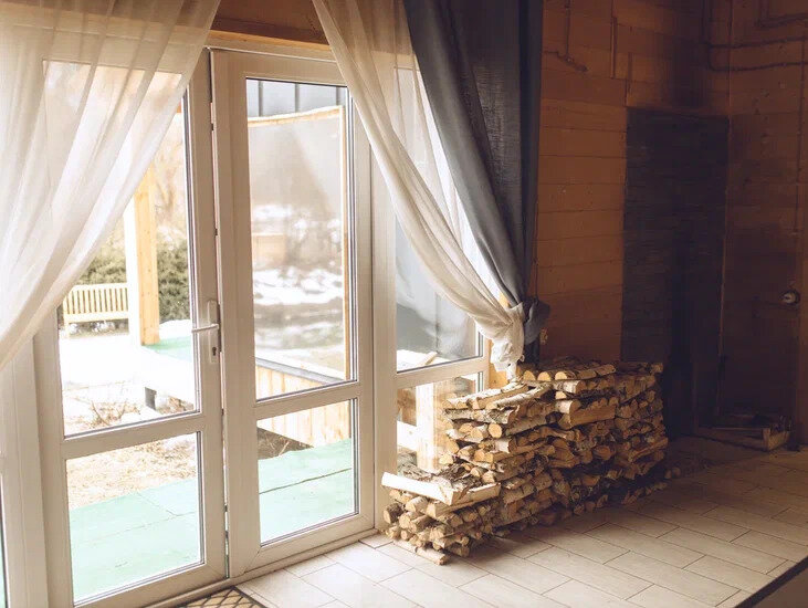 Из дома открывается фантастический вид на поле через панорамное окно.