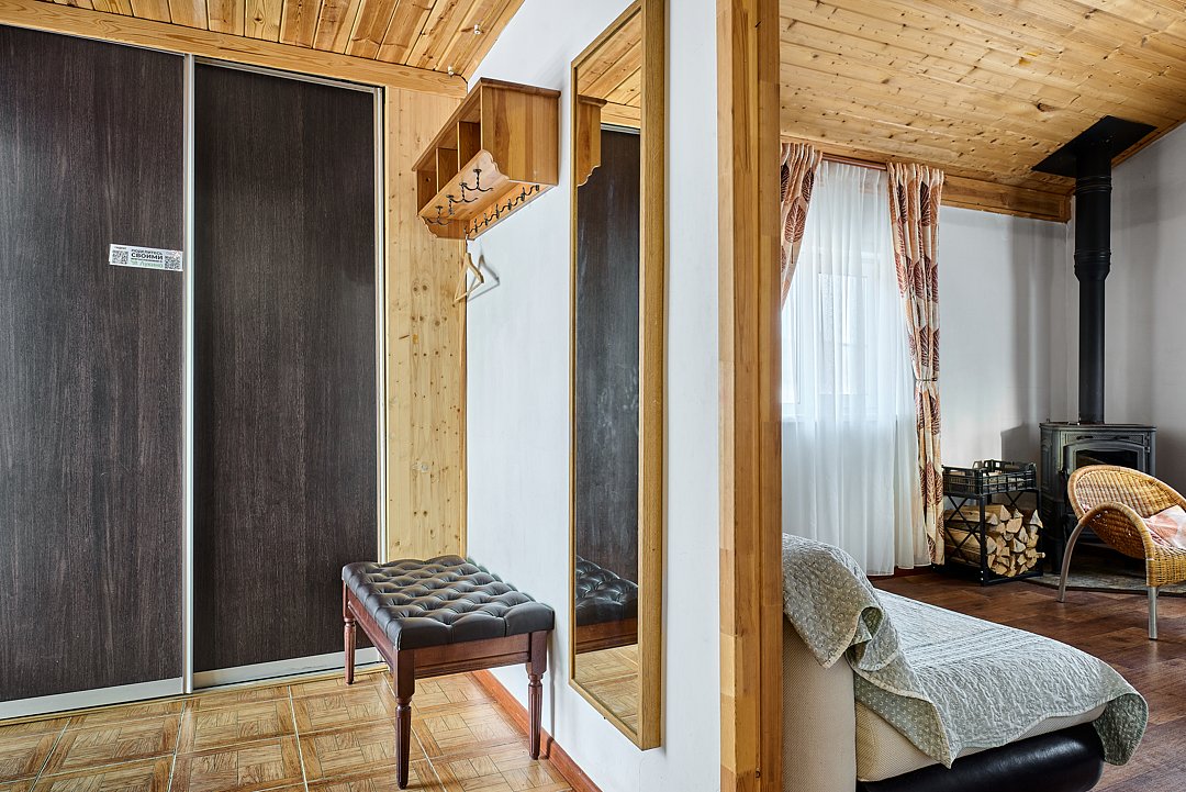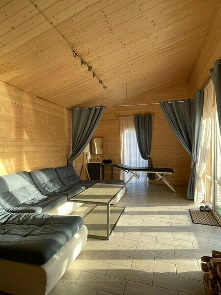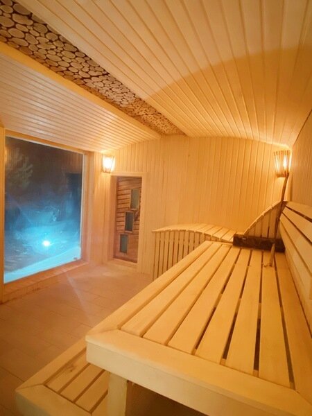 Инфраструктура: чан, зона отдыхаРасположение: выход к рекеУютная баня с дровяной печкой. В парной уникальное панорамное остекление и отдельный выход к реке прямо из парилки. Большая комната отдыха с шикарным видом на реку. Кедровая бочка для ароматерапии. Массажная зона и чан с теплой водой под открытым небом — все создано для идеального отдыха.