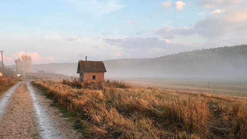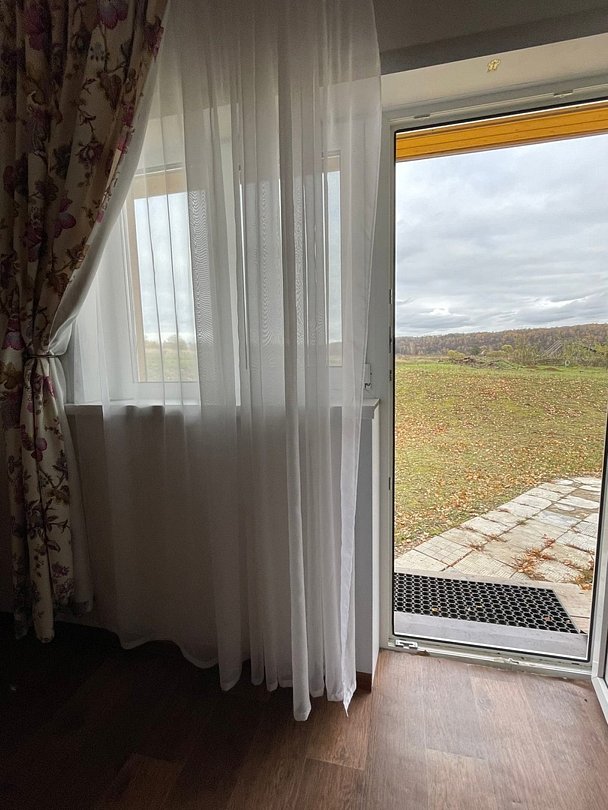 - Балкон с видом на яблоневый сад и сенокосные угодья