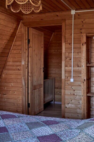 - Двуспальная кровать «king-size» под высокими двускатными потолками