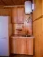 кухня-гостиная, в которой располагаются кресло-кровать, журнальный столик с телевизором, кухонный стол со стульями, холодильник, электро-варочная поверхность, раковина, кухонный гарнитур с необходимым набором посуды, рассчитанным на 6 персон (столовые приборы, глубокие и мелкие тарелки, стаканы и стопки, чайный сервиз), набором посуды для приготовления пищи (набор кастрюль, сковорода, чайник, кухонный и консервный ножи, разделочная доска) и другой кухонной утварью;
