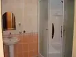 санузел оборудован душевой кабиной, унитазом, раковиной и полотенцесушителем, а также аксессуарами для ванной комнаты, полотенцами и необходимыми предметами для уборки помещения.