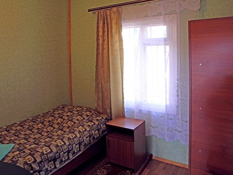 Внутри: спальная комната, в которой 3 односпальные кровати, прикроватные тумбы, двустворчатый шкаф, 3 комплекта постельного белья; кухня, в которой располагаются кухонный стол со стульями, холодильник, газовая плита, раковина, кухонный гарнитур с необходимым набором посуды, рассчитанным на 3 персоны (столовые приборы, глубокие и мелкие тарелки, стаканы, бокалы), набором посуды для приготовления пищи (набор кастрюль, сковорода, чайник, кухонный нож, разделочная доска) и другой кухонной утварью. Санузел оборудован душем (холодная и горячая вода), унитазом, а так же аксессуарами для ванной комнаты, полотенцами и необходимыми предметами для уборки помещения.