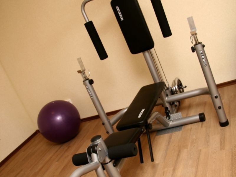 Тренажерный зал базы отдыха «Шахтер» оснащен: беговой дорожкой, силовой установкой, велосипедами.