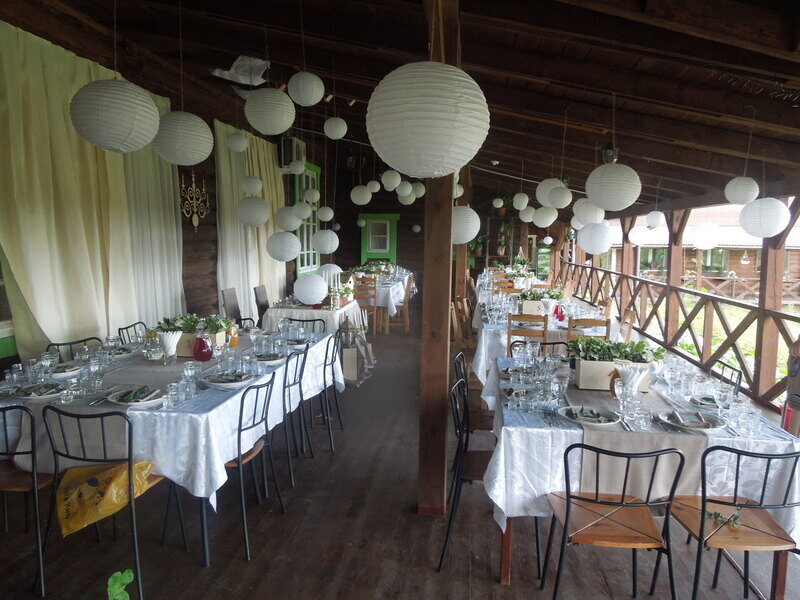 Кафе народной кухни оформлено в стиле этнофутуризма. Обеденный зал рассчитан на 40–60 человек, это прекрасное место для проведения праздничных мероприятий. В теплое время работают веранды рядом с кафе. Две веранды (на 20 и на 80 человек) и открытая площадка с уютной избушкой–беседкой (на 20 человек).