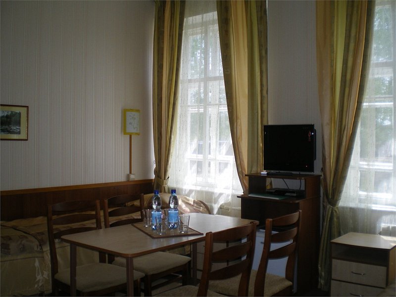 Трехместный номер повышенной комфортности Оригинальный авторский дизайн, соответствующий названию номера. Органичное сочетание всех элементов декора создает умиротворяющую обстановку номера, соответствующую его названию. Двухместная и одноместная кровати, комфортная обстановка и красивый вид из окна делает этот номер одним из лучших для семейного отдыха в "Раздолье". В номере большая двуспальная кровать односпальная кровать вместительный шкаф комод тумба для одежды холодильник кондиционер ТВ wi-fi стаканы дополнительная посуда предоставляется В ванной комнате раковина унитаз душевая кабина 3 вида полотенец жидкое мыло стаканы фен предоставляется