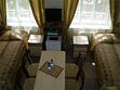 На веранде поместья - 2 дивана, обеденная зона, холодильник Большая гостиная - красивая мебельная группа - четыре двуспальных дивана, спутниковое ТВ На кухне СВЧ -печь, шкаф для посуды, электрочайник, электрокофеварка, столовый и чайный сервизы, 2 санузла: 1 - душевая кабина, раковина, унитаз, биде, для удобства гостей предусмотрены - полотенца, наборы косметики, таз; 2 - туалет, раковина, Вторая гостиная - диван, обеденная зона, Спальня - двуспальная кровать, В номере вешалки большая гостиная стол стулья шкаф 5 двуспальных диванов ТВ холодильник набор посуды. В ванной комнате душевая кабина раковина унитаз биде 3 вида полотенец.