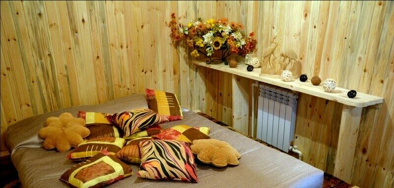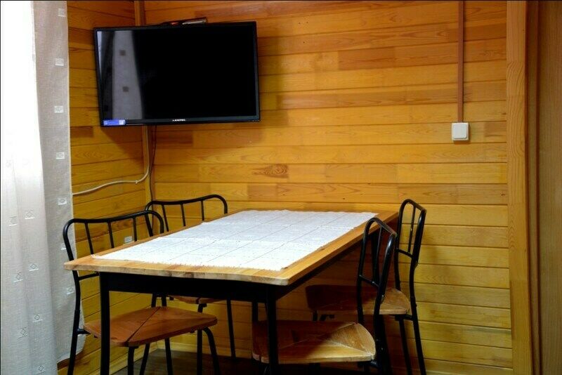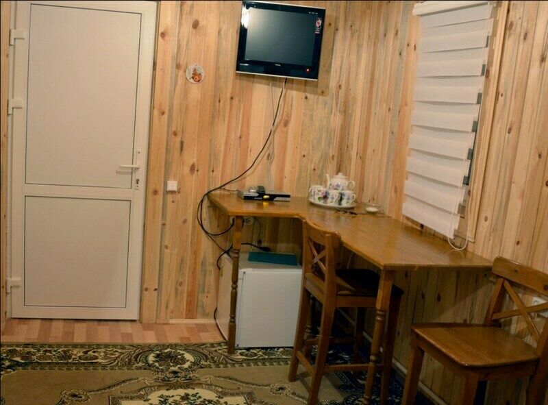 Коттедж "Шале " - это уютный домик для двоих с отдельным маленьким двориком , который украшают хвойники, девичий виноград и сирень, деревянная садовая мебель и мангал. Планировка коттеджа : из небольшой прихожей ведут двери - одна в санузел , другая - в жилую комнату. Прихожая : шкаф,комод, тумба для мелочей , тумба для обуви, открытая вешалка, зеркало Оформление номера выполнено в cтиле прованс: беленая и светлая вагонка, декор природной тематики из дерева. На широком подиуме, затянутом ковром, находится большое 2-х спальное ложе, которое может быть при необходимости заменено двумя отдельными спальными местами. Деревянный стол с барными стульями в углу дополняет непринужденную уютную атмосферу. На столе - Чайник, чайная посуда, чай черный/ сахар , минеральная вода 0,5 л/чел. Небольшой холодильник позволит сохранить свежим необходимое. Санузел : раковина, унитаз, душевая, 2 больших и 2 средних полотенца, полотенце для ног, жидкое мыло.