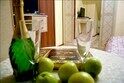 Однокомнатный 4х местный номер на 1 этаже коттеджа с отдельным входом. Спальня-альков (большая удобная кровать-топчан на ковровом подиуме) Коттедж находится в одном из уютных уголков «Раздолья» рядом с пляжем на реке Арда . Красивые виды на речную долину и цветущий розарий, большой балкон с панорамой видов «Раздолья», удобное зонирование помещений, вся необходимая мебель и большой санузел делают этот номер привлекательным как для отдыха вдвоем , так и для семейного отдыха. Во дворе дома имеется стационарный кирпичный мангал и мебель для отдыха, полянка с цветами и девичьим виноградом. В стоимость номера включены: пользование пунктом проката, пляжной зоной, спортплощадкой, дегустация народных хмельных напитков ОПИСАНИЕ: Усадьба : гриль-площадка с кирпичным мангалом , садовая мебель для отдыха, полянка с цветами и девичьим виноградом. На большом крыльце - два входа на 1й и 2й этажи коттеджа, которые являются отдельными номерами. Тамбур/прихожая: навесная полка-вешалка для одежды, скамья-сундук для дорожных сумок, кондиционер В комнате: 2х спальная кровать, диван раскладной, стол и стулья, телевизор, тумба , обогреватель, кухонный уголок (холодильник, чайник, чашки, пакетированные черный чай и сахар минеральная вода (0,5 л/чел) Балкон: столик/пепельница и скамейки для отдыха Санузел: душевая кабина, раковина, унитаз, биде, 4 больших и 4 средних полотенца, полотенце для ног, жидкое мыло.