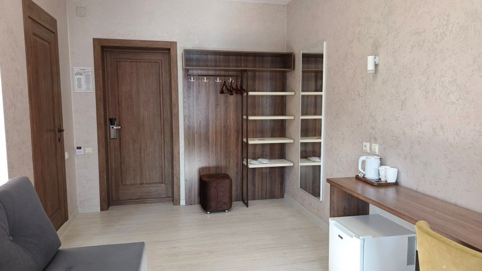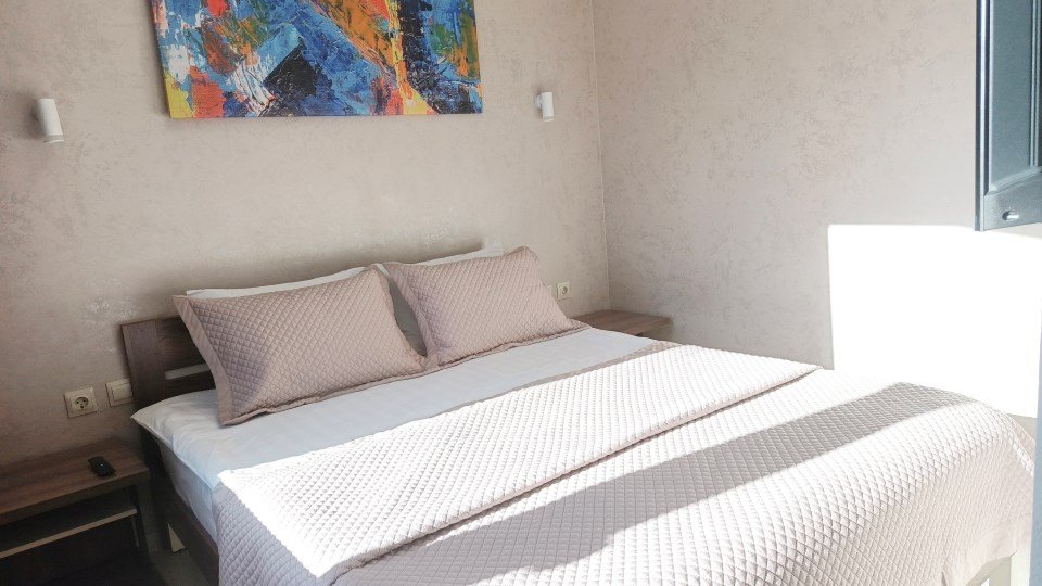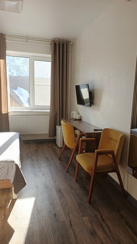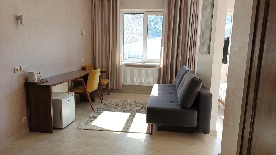 Улучшенный двухместный номер в Гостевом доме. Мы приложили все усилия, чтобы создать идеальное место, где вы сможете отдохнуть, расслабиться и насладиться каждой минутой пребывания. В номере имеется двуспальная кровать и кресло-кровать с возможностью размещения на ней ребенка.Услуги и удобства