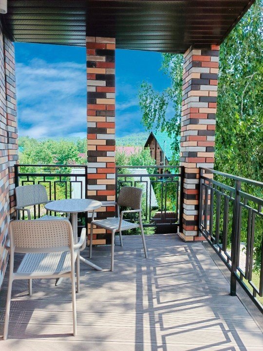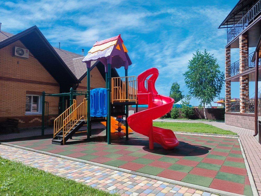Семейный отдыхДостоинстваПонравилось все. В номере есть все необходимое. Расположение удачное,рядом река. Территория ухоженная. В номерах и самом доме всё чистенько. Спасибо девочкам горничным,молодцы. Завтраки вкусные,спасибо)Мангальная зона. Банька. Площадка для детей,бассейн. Всем спасибо)На этой базе были впервые и не прогадали) Рекомендуем)