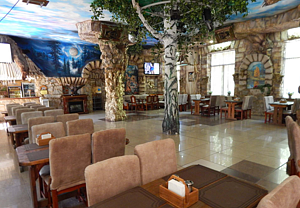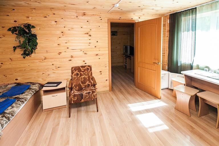 Для размещения предлагаются: благоустроенный корпус с номерами класса «Люкс», 2-этажный деревянный корпус с номерами «Люкс» и «Полулюкс», 10 утепленных бревенчатых домиков с открытой верандой.