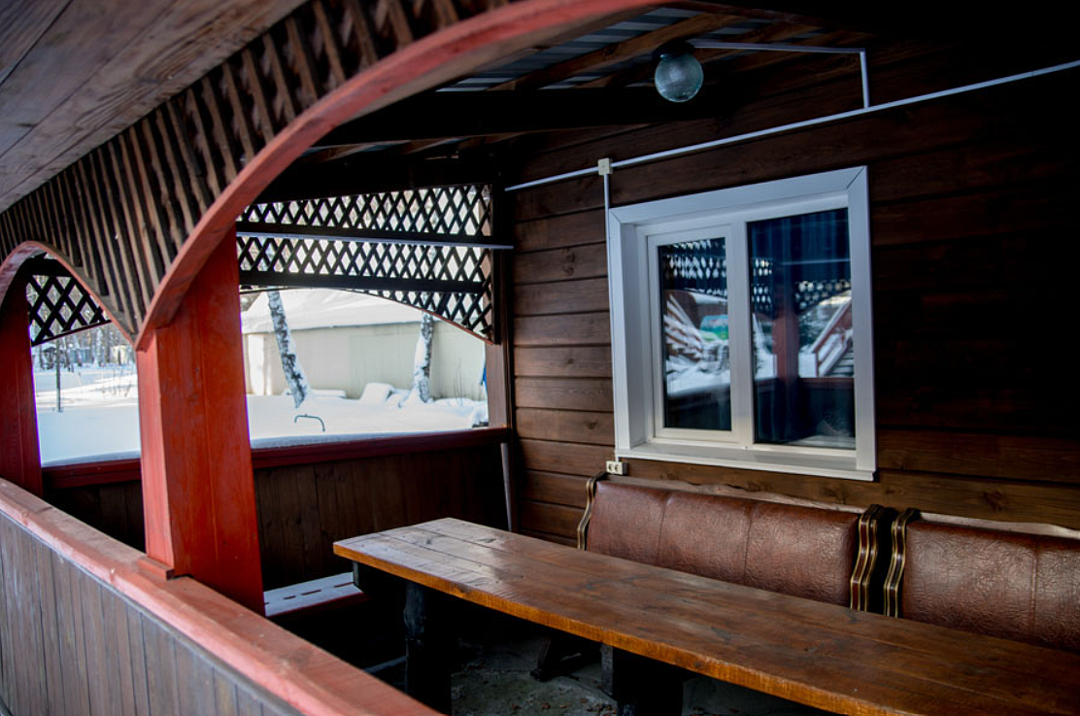 Крытая беседка (холодильник, чайник) - 500 ₽/час ( не менее 5 часов), 5000 ₽ (12-00 до 23-00 ), работает с мая по октябр.