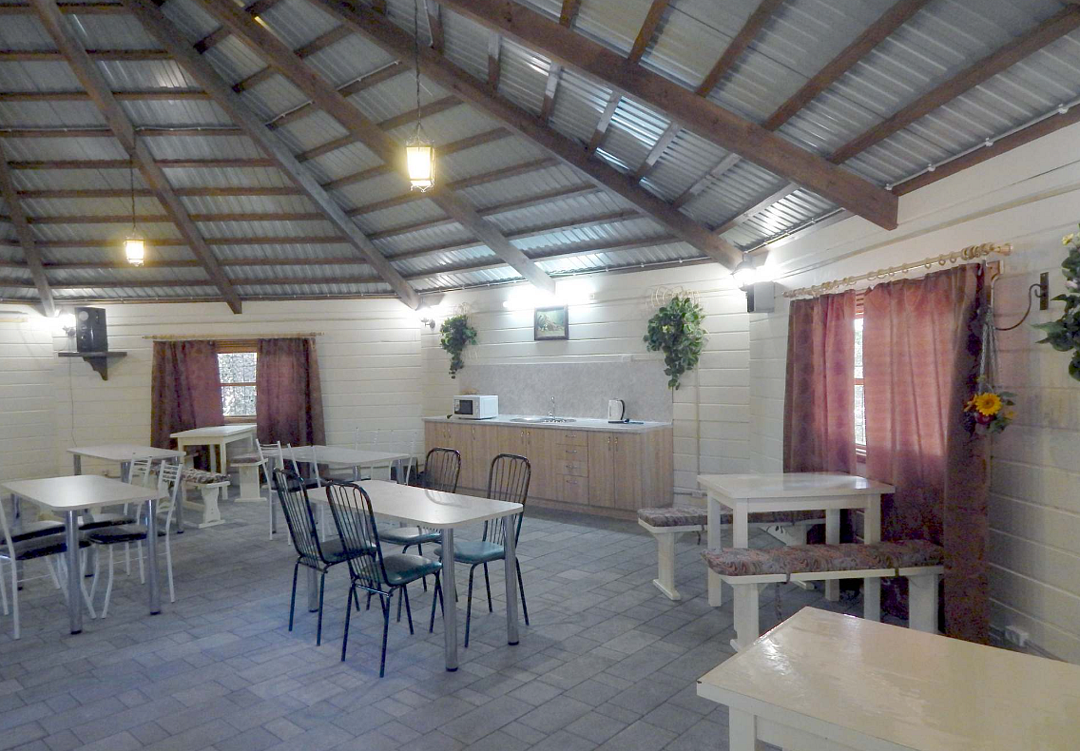 Крытая беседка Чадыр для проведения торжественных мероприятий на берегу реки (кухонная зона с раковиной, холодильник, чайник) - 1500 ₽/час (12-00 до 23-00), работает с мая по октябрь.