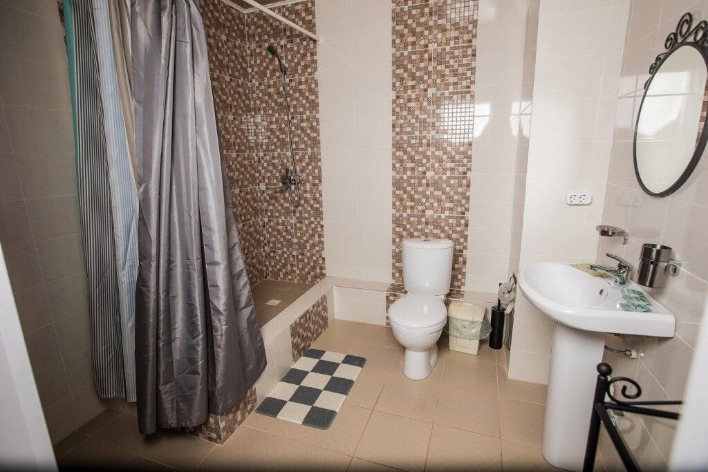 две двуспальные кровати, диван, ТВ, холодильник, с/у душ
