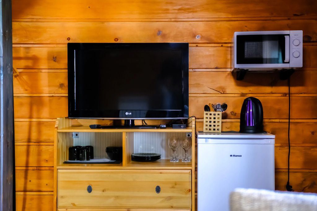 Имеется большая 2-спальная кровать на 2-ом этаже и раскладывающийся диван на 1-ом, 1-спальная кровать — на доп. месте. Наслаждайтесь красивым видом из окна и пользуйтесь удобствами — телевизором с плоским экраном.