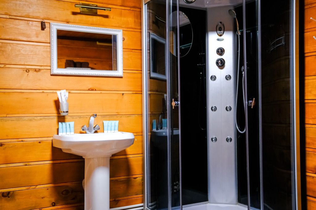 — 2 кедровые бани, в которых есть комнаты отдыха, отдельная мойка и парилка. В большой бане находится купель, рассчитанная на 12 человек, вторая вмещает до 4 человек;