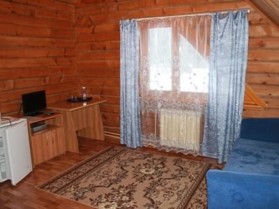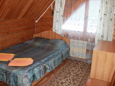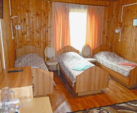 В № 1;2;3;4;5;6. – двуспальная и односпальная кровати с пружинными матрасами, в № 7;8;9;10 – три односпальные кровати. Во всех номерах – вешалка для верхней одежды, зеркало, стол, подставка для обуви. Удобства на улице. Душевая общего пользования.