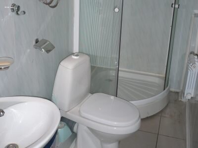 В номере есть две односпальные кровати, кресло-кровать, комод, стулья, сан.узел в номере (душ, раковина, туалет).