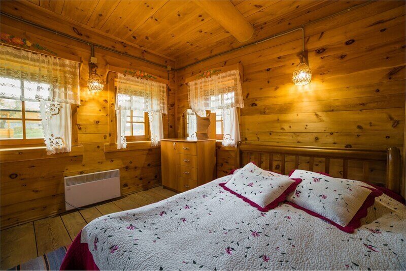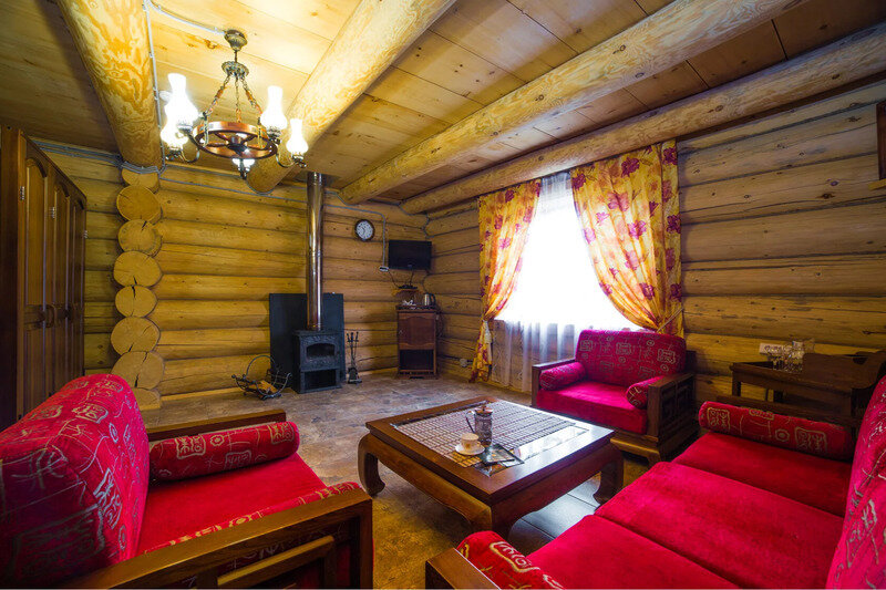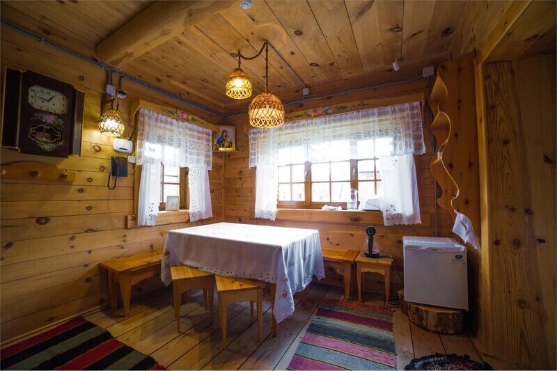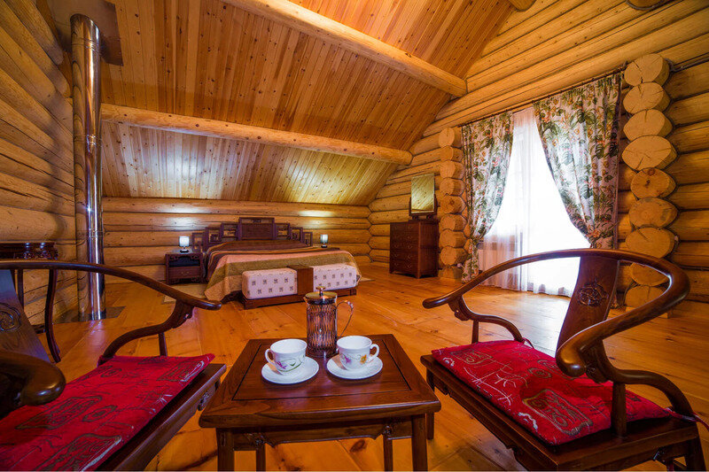 Гостям комплекса предлагаются 13 уютных коттеджей из массива дерева, настоящий камин и вид на горы, озёра и чистое небо. У каждого дома своя площадь, этажность и комплектация.