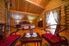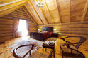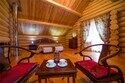 Двухэтажный коттедж из массива кедра, идеально подходит для семейного отдыха. На первом этаже: уютная гостиная с мягкой зоной отдыха, оборудована кухонная зона. На втором этаже две спальни с выходом на застекленную лоджию с мебелью из ротанга.