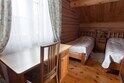Двухэтажный коттедж из хвойных пород дерева, отлично подходит для семейного отдыха или для небольшой компании. На первом этаже: гостиная с мягкой зоной отдыха, оборудована кухонная зона. На втором этаже две раздельные и просторные спальни.