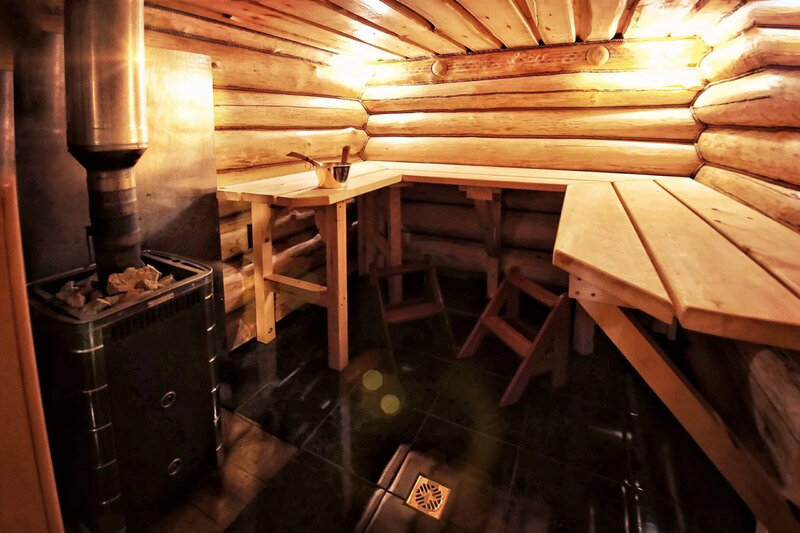 Смотрите — там, на берегу ручья, стоит ладная осиновая банька. Мягкий пар в парной, помывочная, обливная кадка с родниковой водой и комната отдыха. Красота!