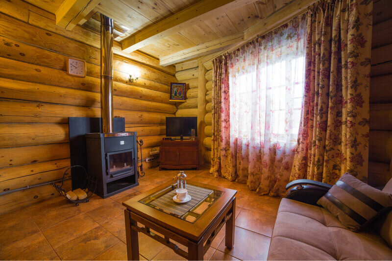 Одноэтажный дом из хвойных пород дерева, в старорусском стиле с печью, которая согревает своим теплом и создает особый уют. Пространство дома разделено на гостиную, спальную комнату и просторные сени.