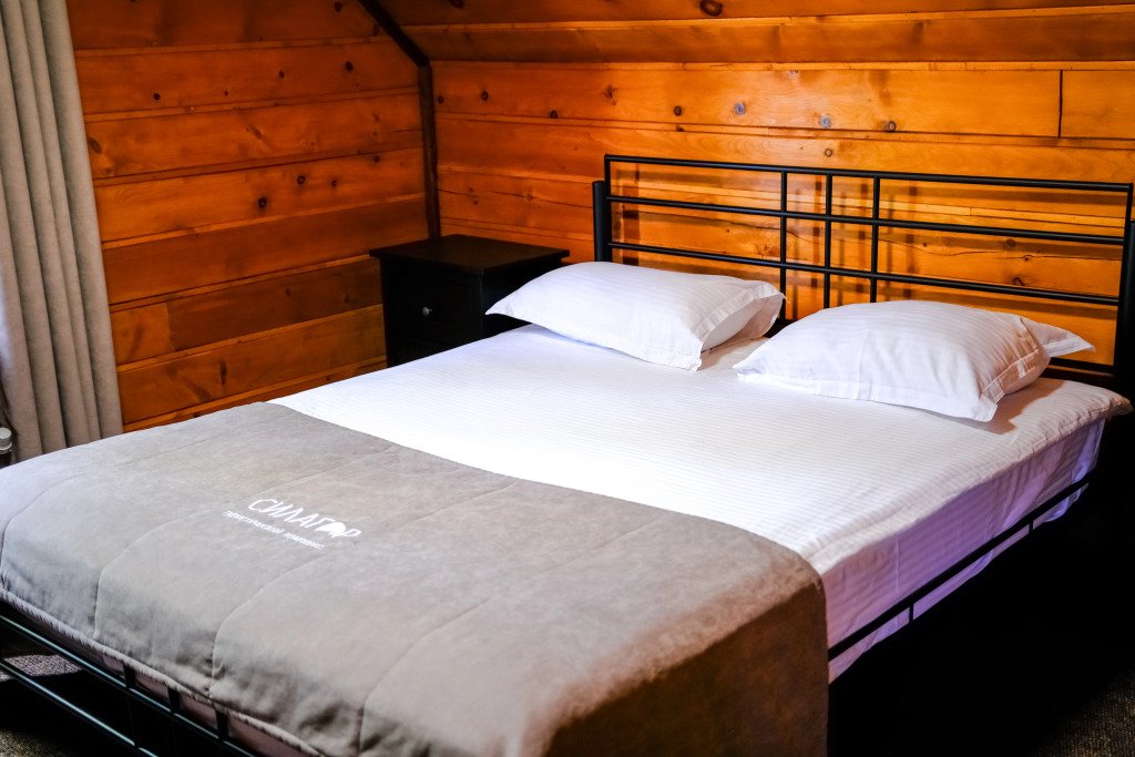 Имеется большая 2-спальная кровать на 2-ом этаже и раскладывающийся диван на 1-ом, 1-спальная кровать — на доп. месте. Наслаждайтесь красивым видом из окна и пользуйтесь удобствами — телевизором с плоским экраном.