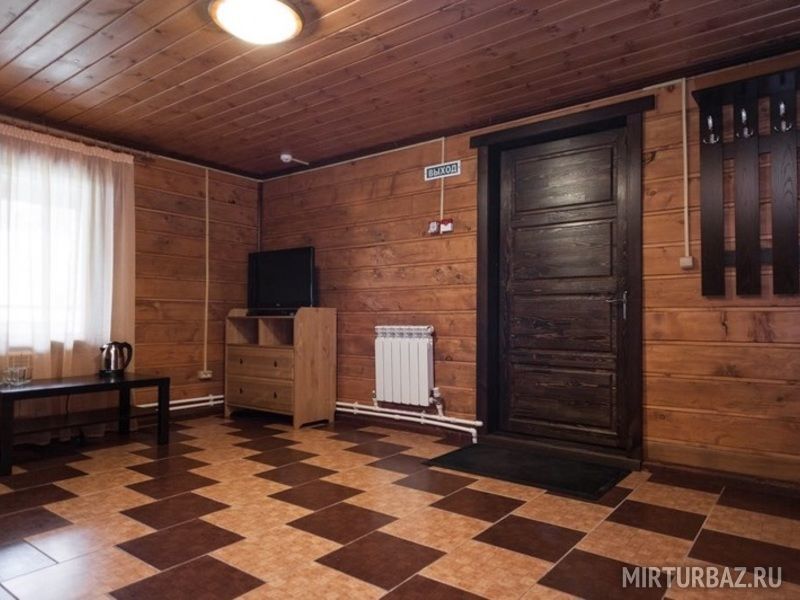 — 2 кедровые бани, в которых есть комнаты отдыха, отдельная мойка и парилка. В большой бане находится купель, рассчитанная на 12 человек, вторая вмещает до 4 человек;