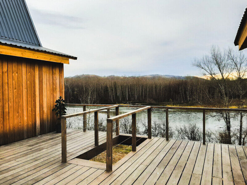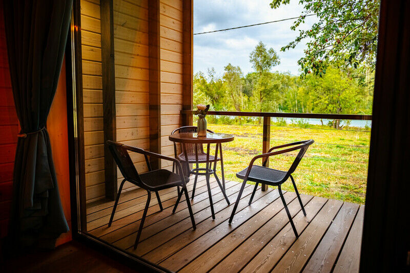Номер в домике в стиле «барнхаус» площадью 20 кв.м. с террасой с видом на реку Катунь.