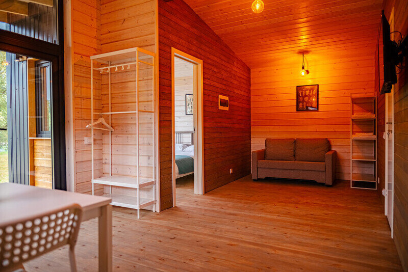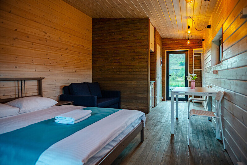 Для проживания доступны уютные домики и апартаменты, оборудованными всеми удобствами, необходимыми для комфортного проживания.