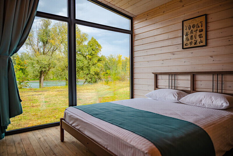 2 номера в приватном удаленном месте на земляничной поляне с видом на сливающиеся протоки Катуни. На втором этаже дома у вас есть комфортная спальня с двуспальной кроватью, откуда открывается потрясающий вид на окружающие горы и леса через панорамные окна, которые наполняют дом светом и создают ощущение полного слияния с природой..