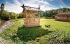Отдельно стоящий стилизованный под китайские хатки летний домик из точеного бруса.