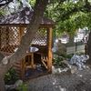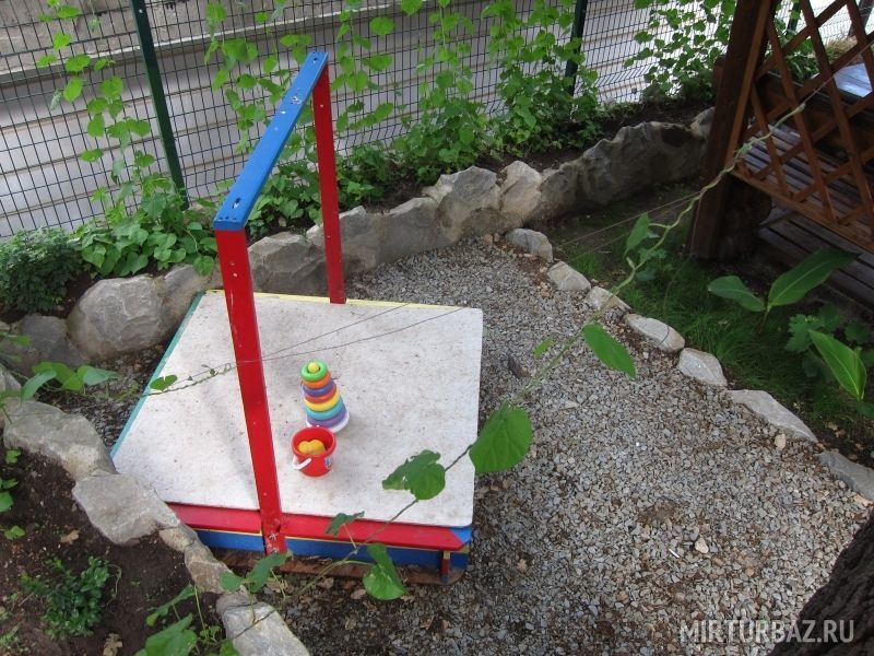 С беседками, качелями, гамаком, декоративными украшениями и цветами