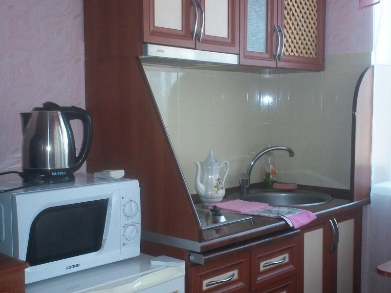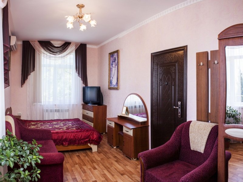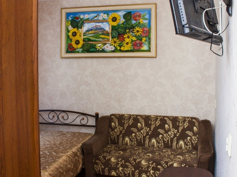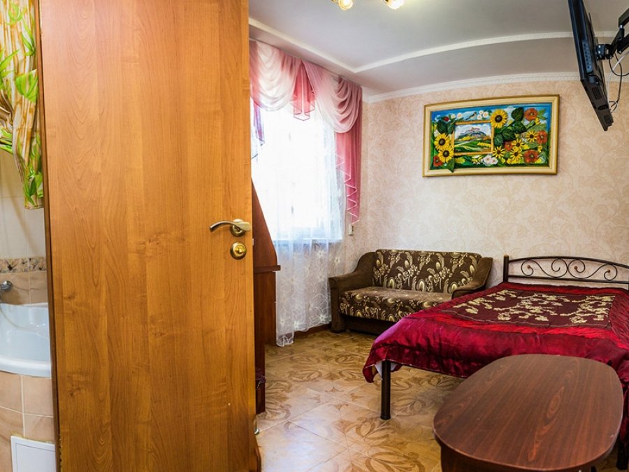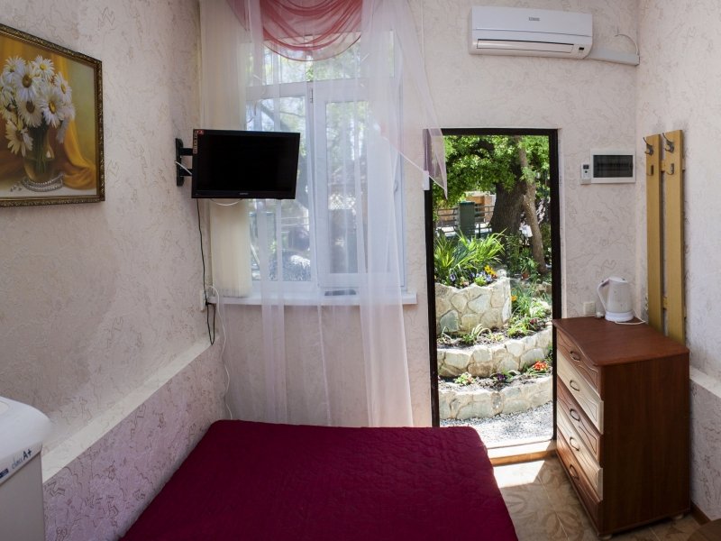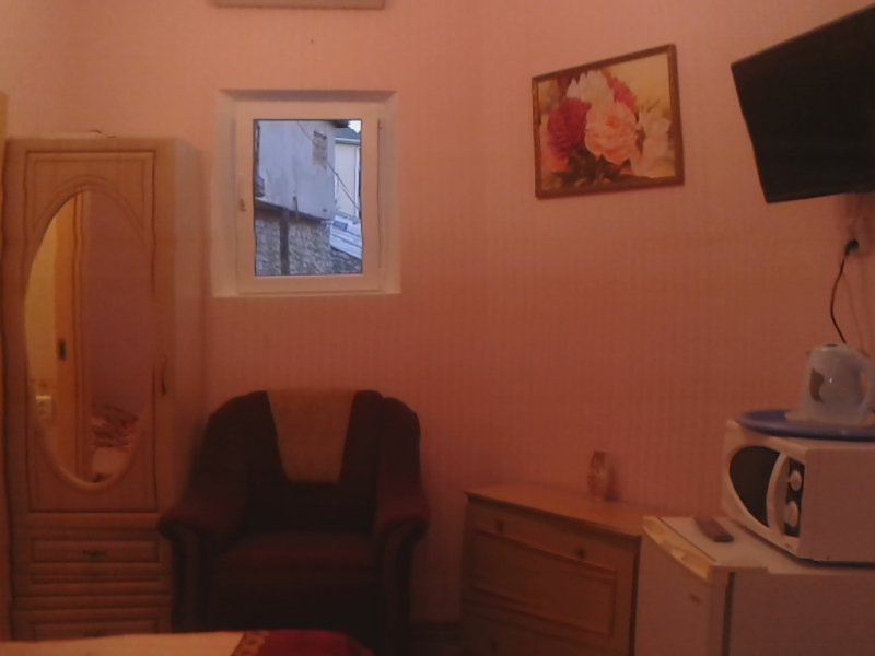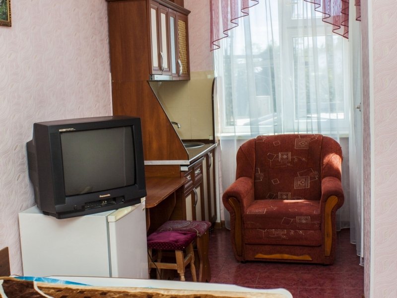Небольшой бюджетный однокомнатный номер для двоих гостей. Возможно размещение с ребенком (доп. место - раскладное кресло-кровать). В номере также есть телевизор, Wi-Fi, кондиционер, шкаф, комод, постельные принадлежности. Холодильник, электрочайник, микроволновая печь, электроплитка, ложки, вилки, тарелки, стаканы, кружки, открывашка, нож, досточка, губка и тряпочка для посуды/стола, кастрюля, сковорода. Ванная комната с туалетом, банные и лицевые полотенца, бойлер, фен, утюг, туалетная бумага, мыло.В номере