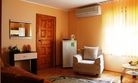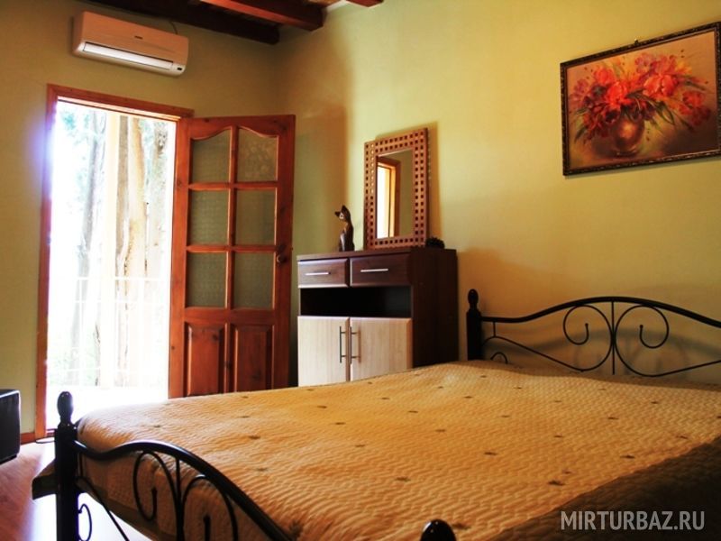 Просторный однокомнатный двухместный номер. Основное спальное место может быть как двуспальным, так и двумя односпальными. Номер оснащён всем необходимым для комфортного отдыха: кондиционер, телевизор, холодильник, чайник, набор посуды, доступ к интернету. К номеру прилегает большой балкон, обвитый виноградом, и с видом на море.