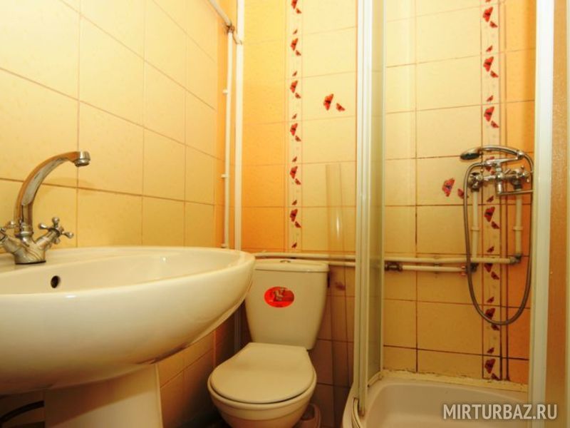 Этот однокомнатный номер предоставляется для размещения 2х человек. Расположен на первом этаже, возле бассейна В номере есть большой раскладной диван, тумбочки, столик, шкаф для одежды, кондиционер, телевизор, холодильник, чайник, доступ к Интернету. Санузел состоит из душа, умывальника, унитаза, расположен не в самом номере, а на выходе из него, буквально на расстоянии шага. Вид из окна на соседнюю озеленнённую территорию.