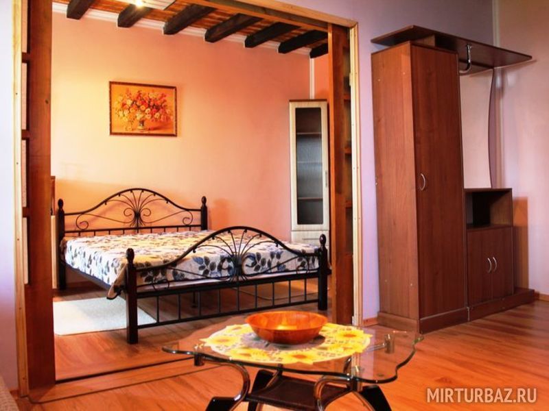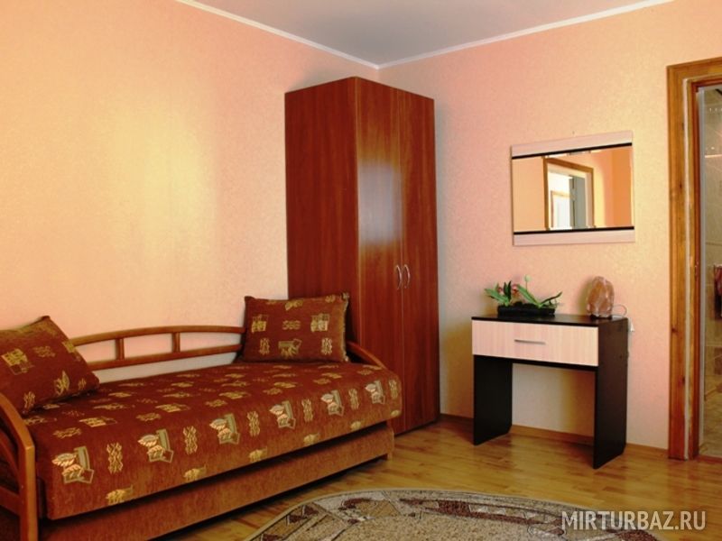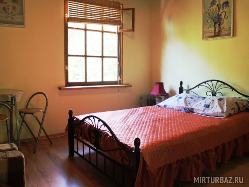 Номер однокомнатный, предоставляется для размещения 2х человек. В номере есть уютная и большая двуспальная кровать, небольшой раскладной диван, тумбочки, столик, шкаф для одежды, кондиционер, телевизор,холодильник, чайник, доступ в Интернет. К номеру прилегает небольшая площадка для отдыха. Вид с площадки устремляется на озеленённую садовую территорию нашего двора. Вид из окна устремляется на забор. Санузел состоит из душа, умывальника, унитаза.