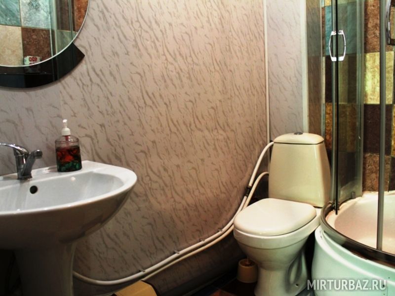 Санузел смежный, состоит из душевой кабины, умывальника, унитаза.