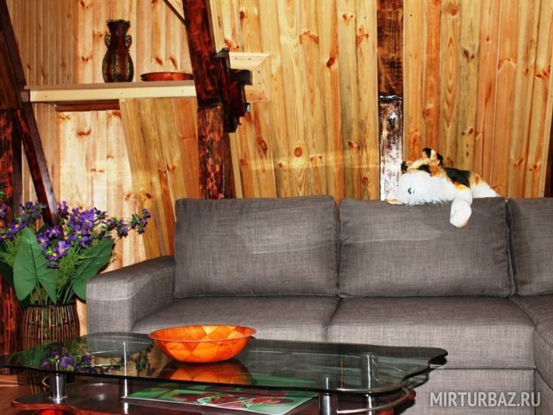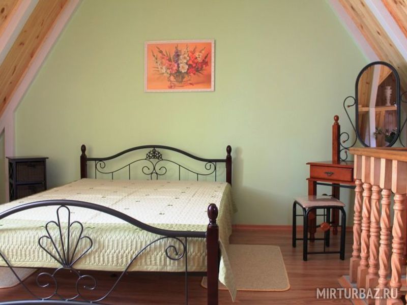 Прекрасный, новый видовой двухкомнатный номер, выполненный в дереве в стиле кантри. Это двухъярусный номер повышенной комфортности с современным интерьером, с прекрасным удобным для отдыха видовым балконом, полностью изолированным от посторонних глаз, утопающий в зелени кипарисов и в цветах магнолии. Номер рассчитан на четырёх человек или менее. В нём есть большая двуспальная кровать с ортопедическим матрасом и раскладной диван, тумбочки, вместительный шкаф для одежды, телевизор, холодильник, электрочайник, доступ к Интернету, столы и стулья, комфортные кресла. Есть свой отдельный балкон с плетеной мебелью. Санузел проторный и смежный, состоит из душевой кабины, умывальника, унитаза. Раздельные комнаты – гостиная и спальня, оформленные с изысканным вкусом. Востребован людьми, желающими спокойного отдыха, уединения и пользуется популярностью у ценителей комфорта.