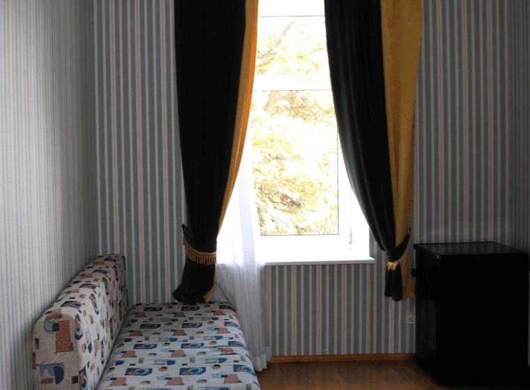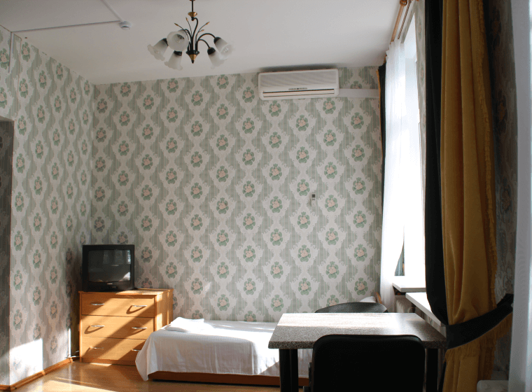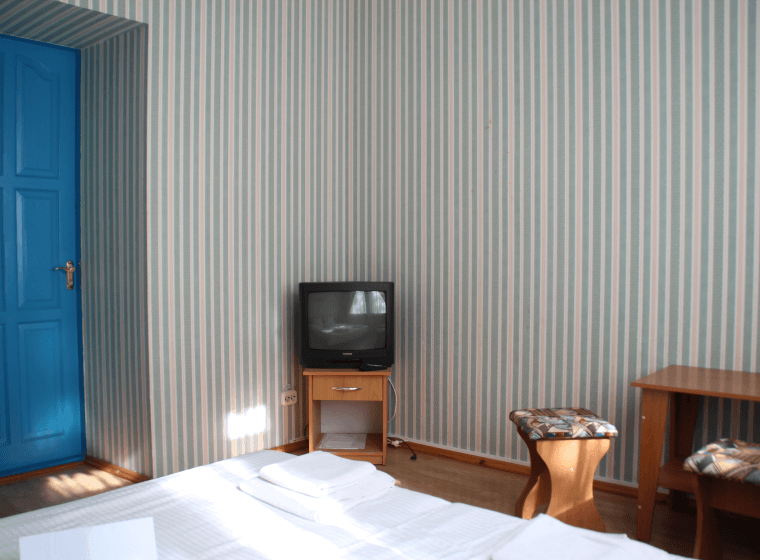 Санузел и душевая кабина общего пользования находятся в коридоре (на 5 номеров ). В номере имеется: Wi-Fi, телевизор с КТV; кондиционер, холодильник, чайная посуда.