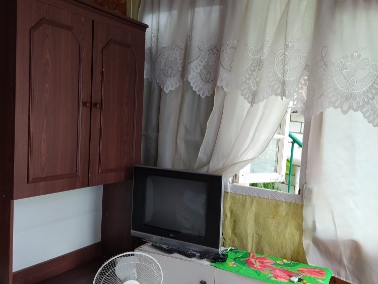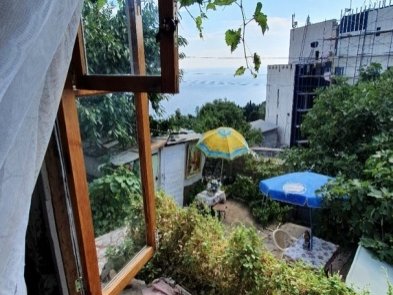 1 комната 2 спальных места Отдельно стоящий досик в саду с одной большей кроватью идеально подходит для пары.Можно втроем с ребенком. 2 шкафа, 2 тумбочки, телевизор, эл.плита,чайник.Рядом, в зоне отдыха в саду есть еще эл.плита,холодильник и обеденный стол для вас.Душ тоже рядом напротив дома, а в туалет нужно пройти во двор 8 метров. 10 м2 Телевизор Wi-Fi Вентилятор Душ и туалет во дворе Душ и туалет на 2 номера Холодильник на этаже Вид из окна Вид на море Панорамный вид Дворовая территория Балкон / Терраса Кухонное оборудование Плита ЧайникВ номере
