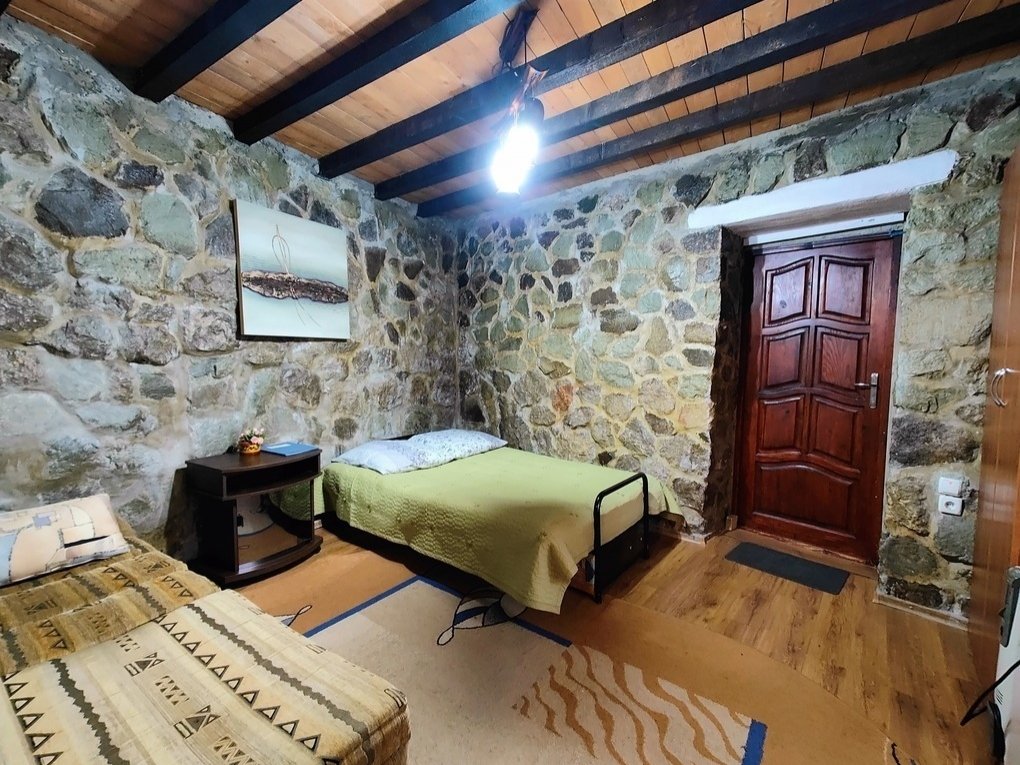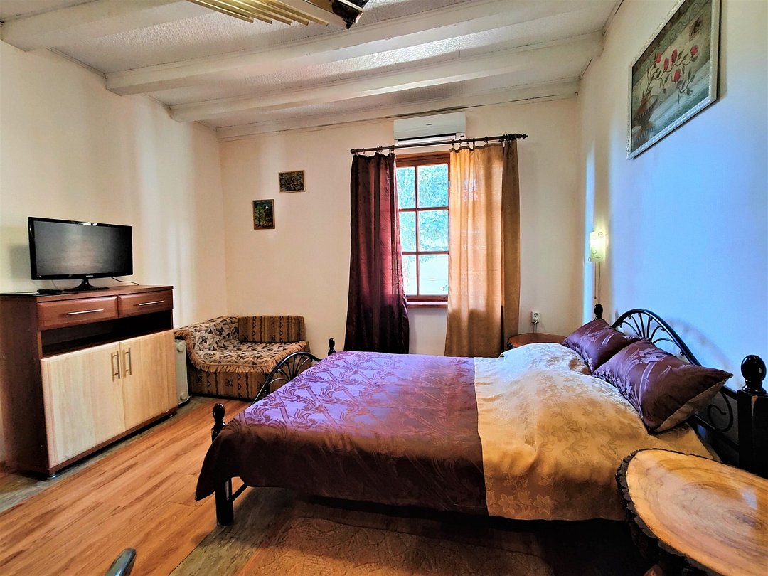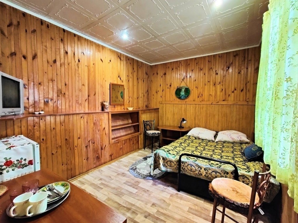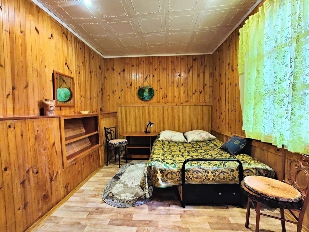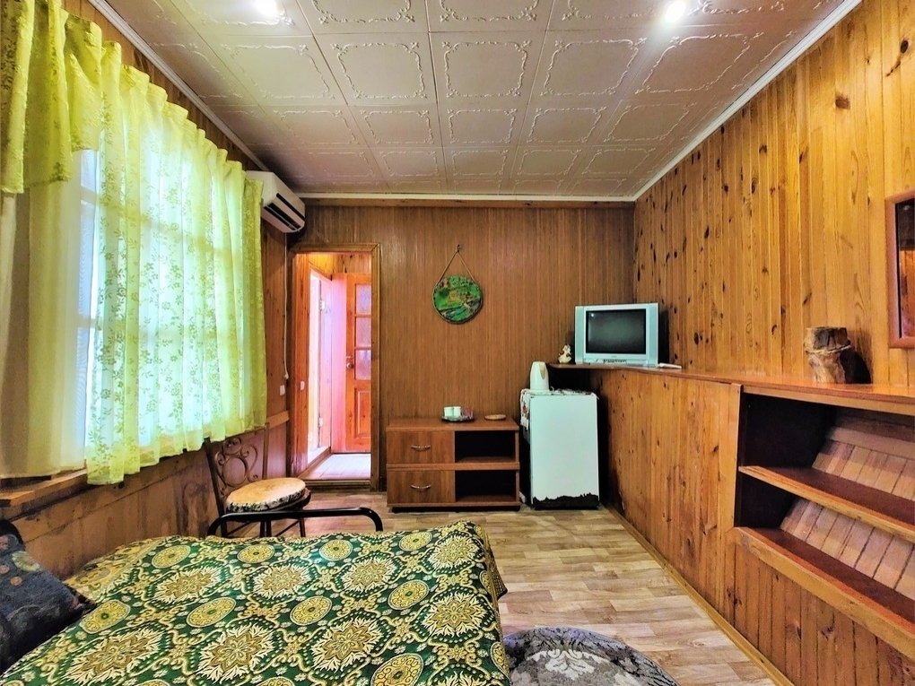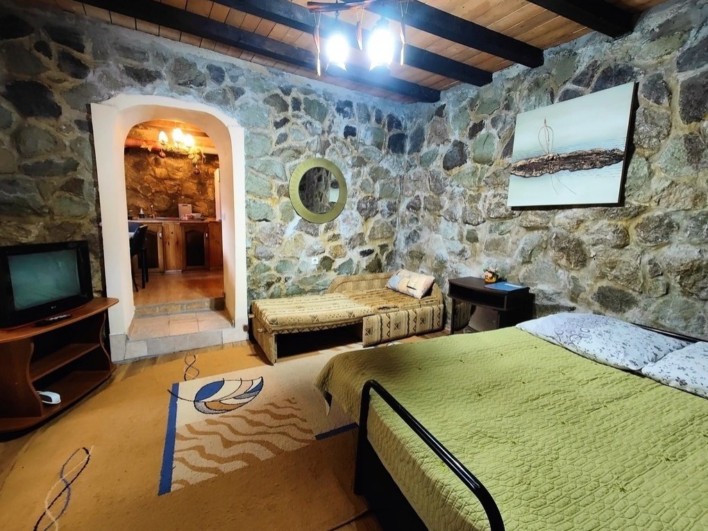 Этот номер уникален, выполнен в камне местного происхождения. Расположен на 1 этаже возле бассейна, общей площадью 20 м.кв., рассчитан на 2 гостей с возможностью дополнительного места за доп.оплату. В жаркий зной Вас удовлетворит приятная прохлада, поддерживаемая природными материалами, без помощи кондиционера. Номер оснащён удобным двуспальным диваном в качестве основного спального места, шкафом-гардеробом, телевизором, высокоскоростным Wi-Fi, холодильником, электрочайником и набором посуды. Этот номер по достоинству оценят гости с нестандартным взглядом на мир, люди искусства, оригиналы и любители единения с природой!:) Номер обладает очень творческой аурой;) Вместе с проживанием в этом номере Вы получаете: место на закрытой охраняемой парковке (узнавайте наличие), пользование бассейном (в летний период), общей кухней, мангалом, мини-библиотекой, гладильными принадлежностями, Wi-Fi на всей территории гостевого дома, ежедневную уборку в номере, информационные услуги, помощь в организации досуга, все доступные нам скидки и акции, тепло и домашнее гостеприимство.В номере