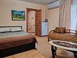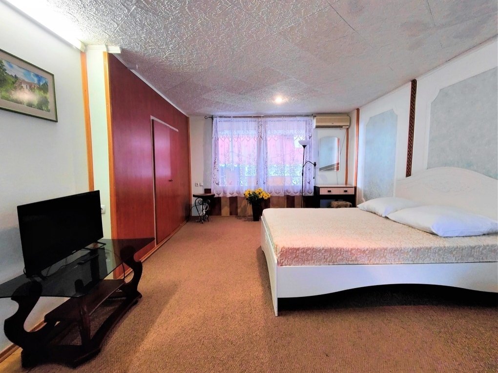 Этот просторный однокомнатный номер расположен на 2 этаже, общей площадью 20 м.кв., рассчитан максимум на 2 человек. Номер обустроен по-домашнему и с комфортом: два раздельных спальных места, вместительный шкаф для одежды, телевизор с высокой четкостью (диагональ шире 32 дюймов), кондиционер, холодильник, электрочайник, высокоскоростной Wi-Fi, просторный санузел. Располагает большим (проходным) балконом с видом на море. Прямо на стол свисают ветви, увешанные гроздьями сладкого Крымского винограда… Вместе с проживанием в этом номере Вы получаете: место на закрытой охраняемой парковке (узнавайте наличие), пользование бассейном (в летний период), общей кухней, мангалом, мини-библиотекой, гладильными принадлежностями, Wi-Fi на всей территории гостевого дома, ежедневную уборку в номере, информационные услуги, помощь в организации досуга, все доступные скидки и акции, тепло и домашнее гостеприимство.В номере