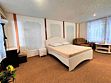 Видовой двухкомнатный трёхместный номер мансардного типа с возможностью дополнительного места (за доп.оплату), расположен на 4 этаже под крышей, общей площадью 50 м.кв. Располагает уютным для отдыха видовым балконом на море, с плетеной мебелью, полностью изолированный от посторонних глаз, утопающий в зелени кипарисов и в цветах магнолии. Раздельные комнаты – гостиная и спальня оформлены в эко-стиле рустик. Располагает большой двуспальной кроватью и двуспальным диваном с ортопедическим матрасом, ЖК Smart TV, холодильником, кондиционером в обеих комнатах, электрочайником, Wi-Fi, комфортной мягкой и балконной мебелью. Санузел просторный. Номер востребован людьми, желающими спокойного отдыха, уединения и пользуется популярностью у ценителей комфорта и экологических натуральных материалов.В номере